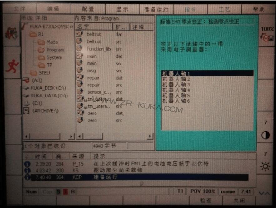 三、 操作KUKA控制手柄,依次選擇如下菜單進(jìn)入零位校準(zhǔn)模式