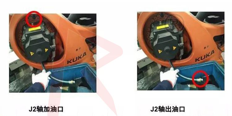 利用M8內(nèi)六角,將加油口螺栓松開,排油完畢后,將六軸旋轉(zhuǎn)180度,進行加油。