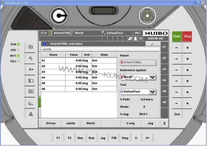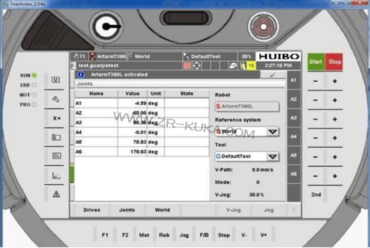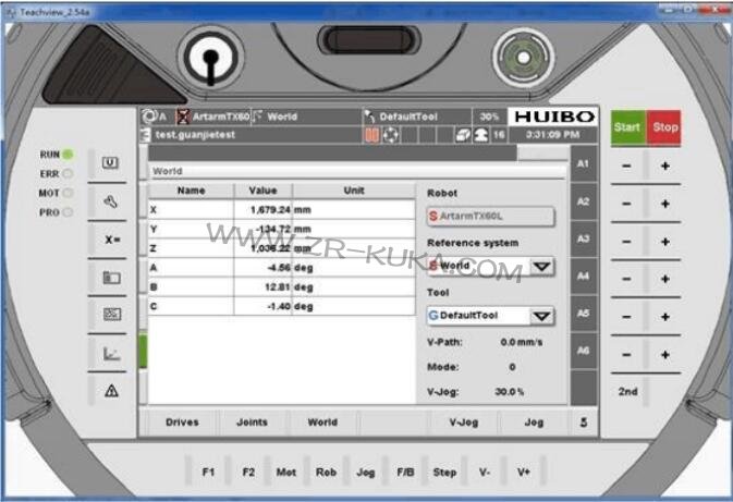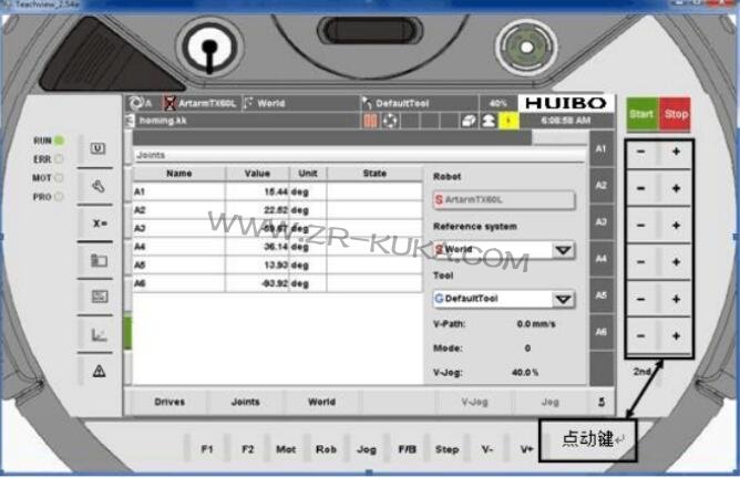用戶選擇好坐標系,設(shè)定好運行速度后,按點動鍵即可對機器人進行手動操作了。