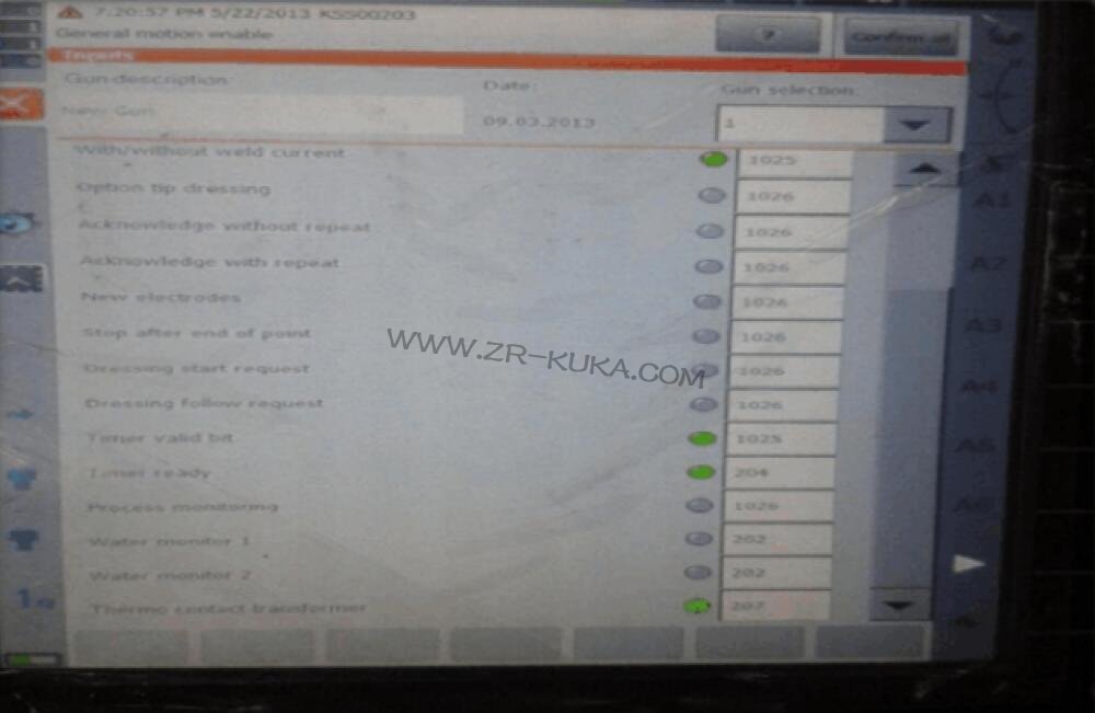 配置→ 伺服強扭矩配置→ inputs→ 將weldend 改為205將with/without weld current 改為1025 將Timer ready 改為204;