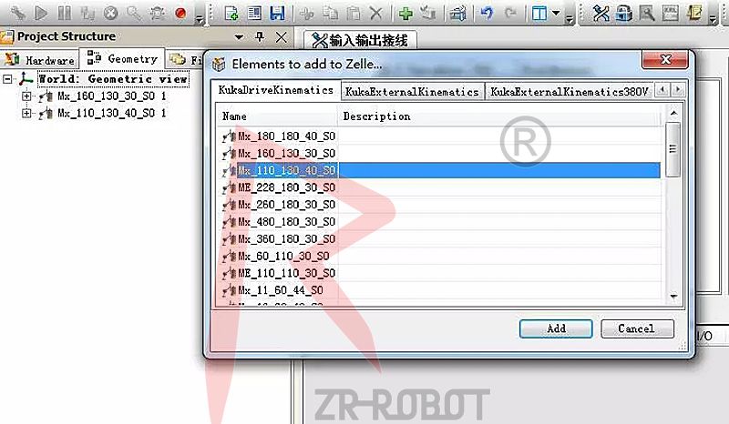 第五步,現在開始添加外部軸,當kuka機器人有兩個外部軸系統時,原則上先添加直線導軌外部系統,再配旋轉軸外部系統。下面配置示例的就是直線導軌外部軸。